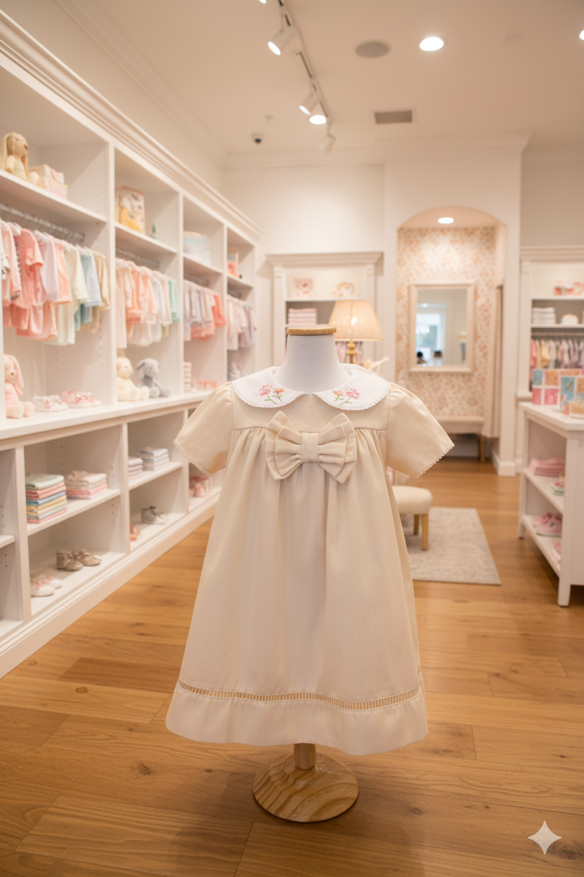 Delicado e charmoso, este Vestido Gola Bordada Bege é confeccionado em tricoline 100% algodão, garantindo conforto, maciez e leveza para as pequenas. Com bordados delicados e laço elegante, o modelo transmite sofisticação e encanto em cada detalhe.