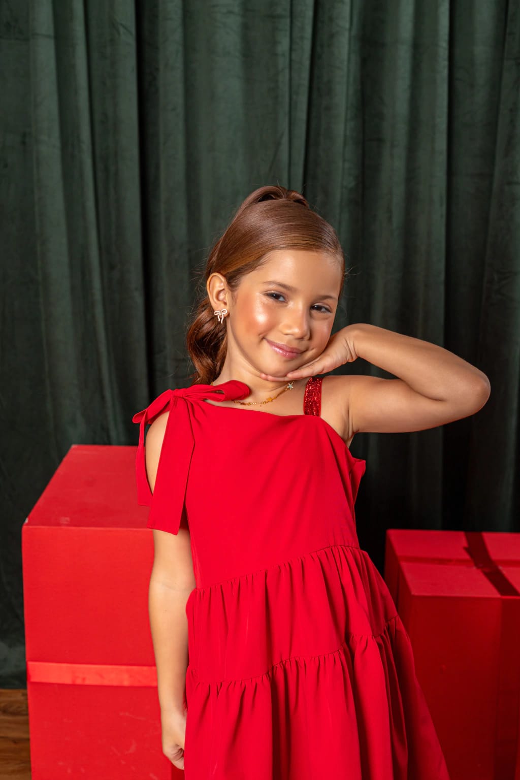 Encantador e elegante, o Vestido Laila Festa foi pensado para proporcionar charme e conforto em qualquer ocasião especial. Confeccionado em tecido leve e macio, ele possui modelagem ampla com saias em camadas, garantindo movimento e um caimento impecável. Os laços nos ombros dão um toque delicado e sofisticado, tornando o look ainda mais gracioso.